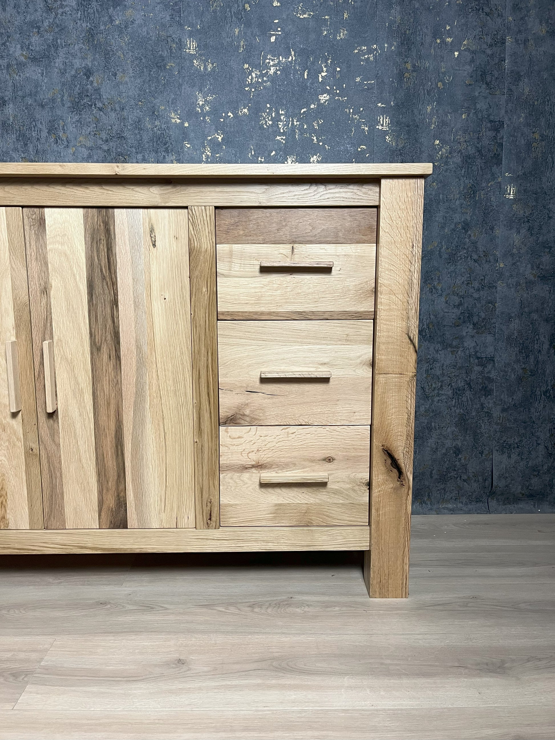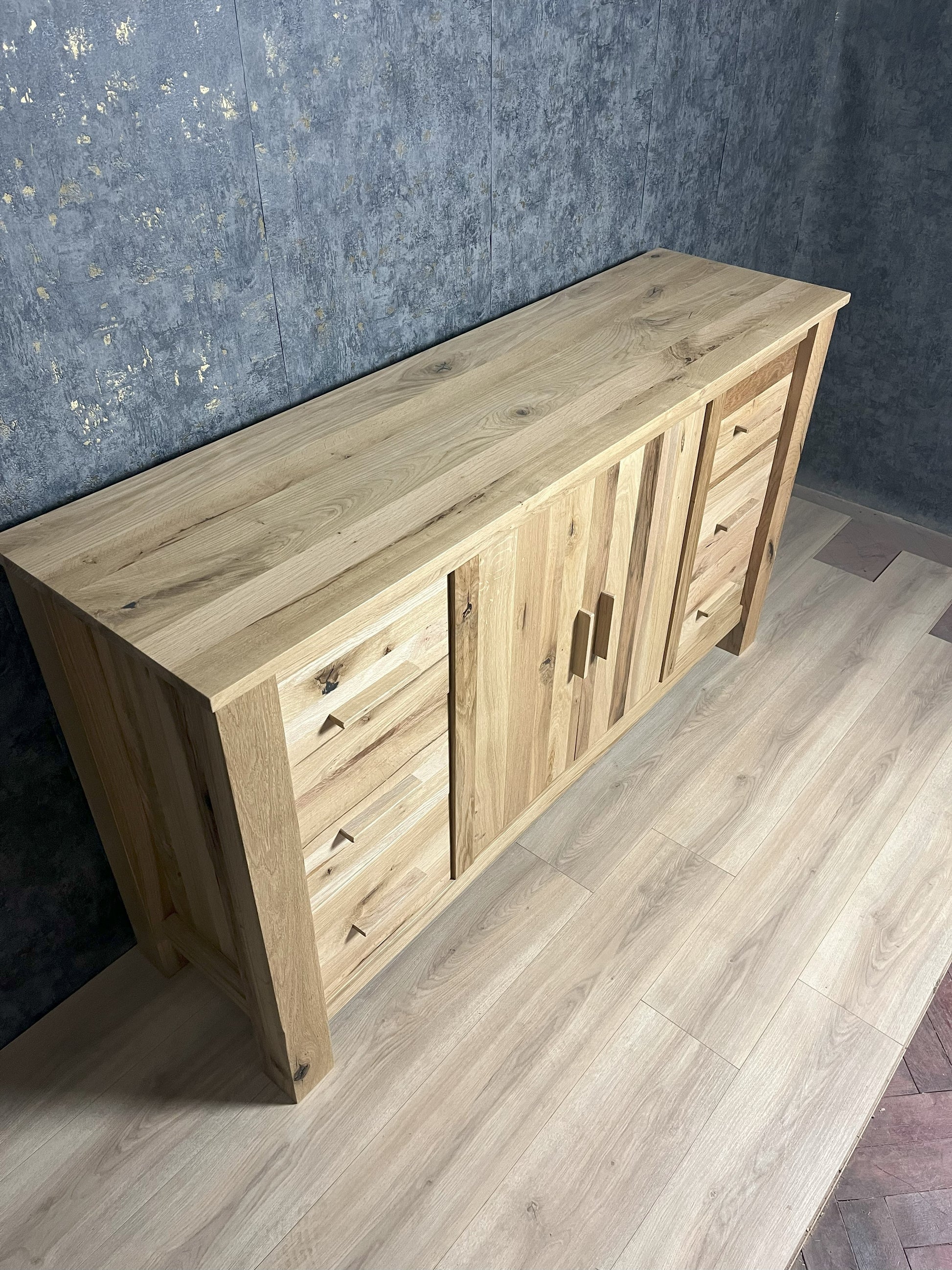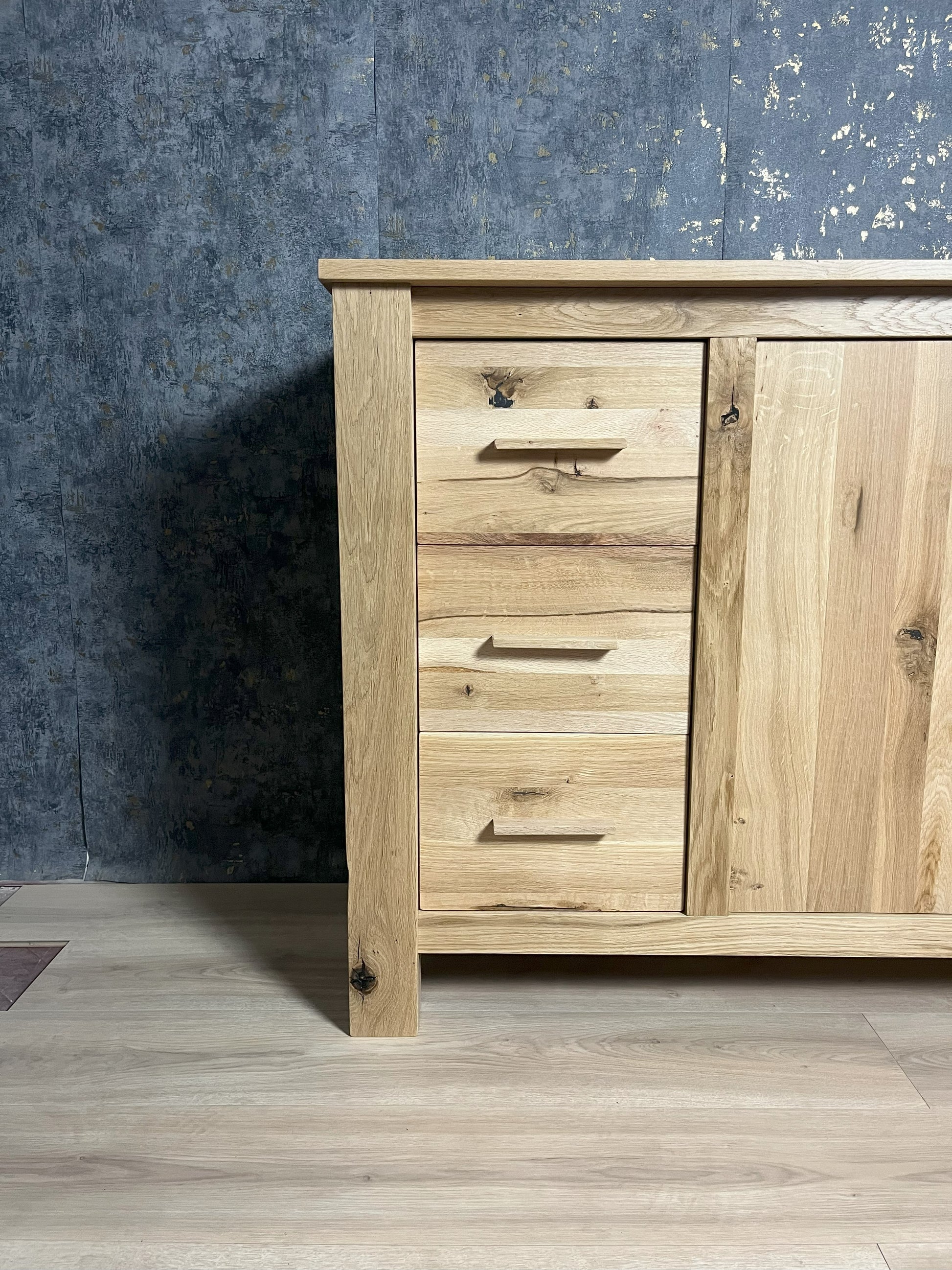 Tahle masivní komoda je vyrobena z rustikálního dubu - obsahuje suky a větší rozbarvení dřeva. Zaměřil jsem se hlavně na pevnost spojů a proto se vám tenhle kus nábytku prostě nerozpadne. Vydrží tolik stěhování, kolik jich vydržíte vy.