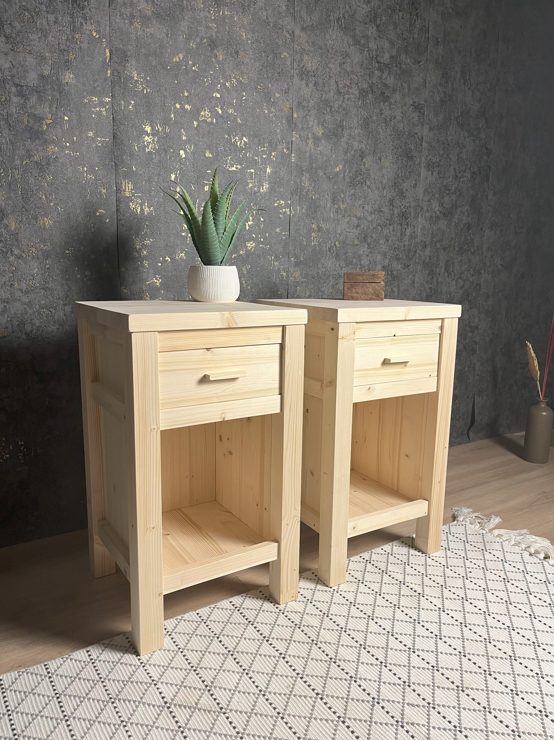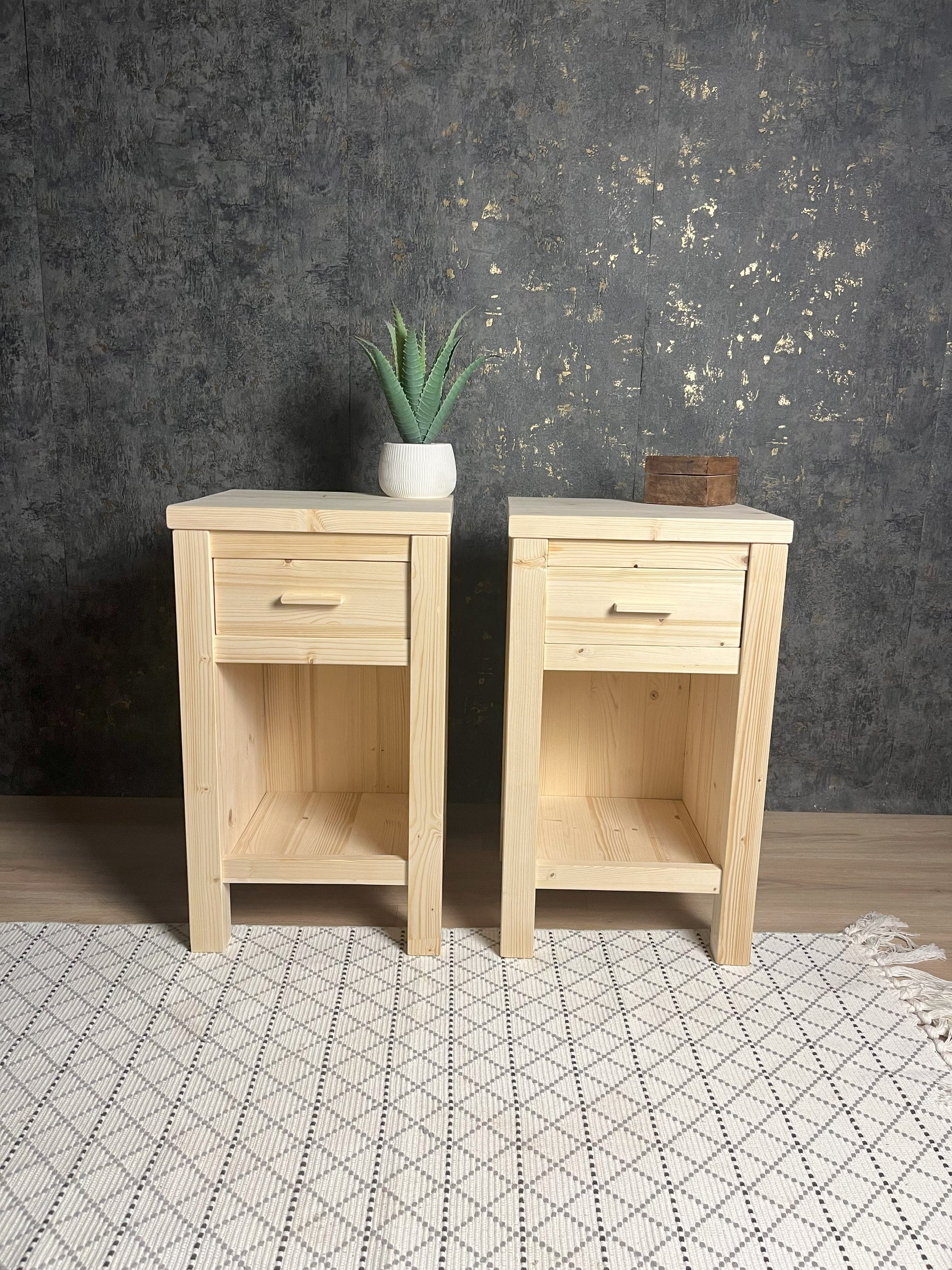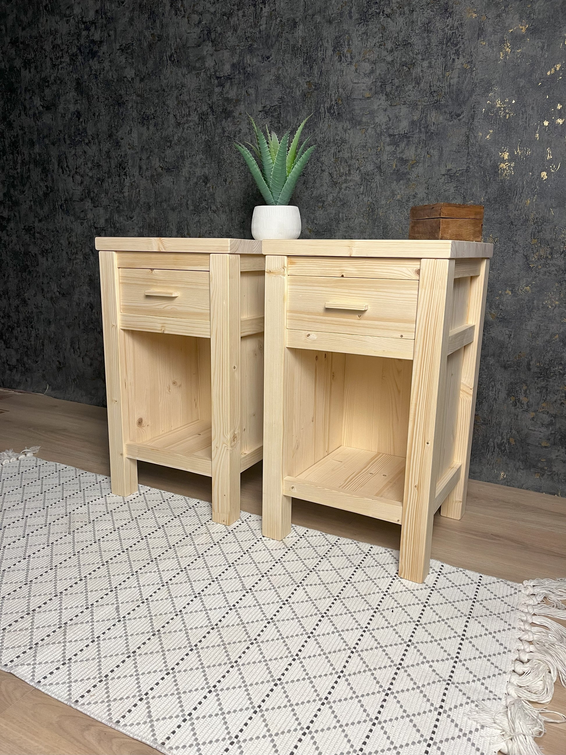 Noční stolky Klasik budou krásným, ale hlavně funkčním doplňkem pro vaší postel. Smrkové dřevo je v truhlařině někdy opomíjené, ale zde vidíme, že i ze smrku se dá vytvořit krásný produkt. Vyrobeno ručně, u každého kusu dbám na jeho pevnost tak, aby vám skutečně vydržel co nejdéle.