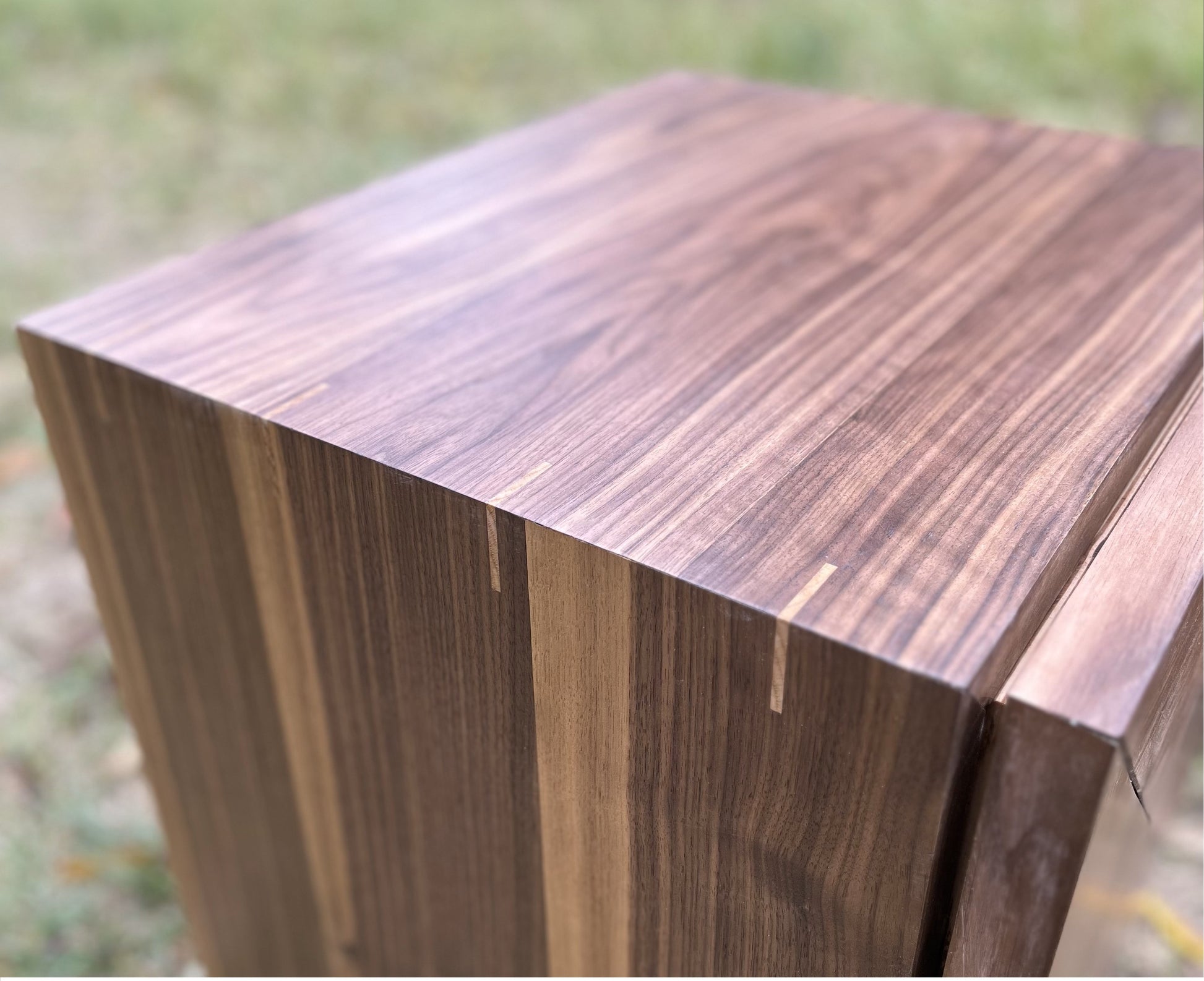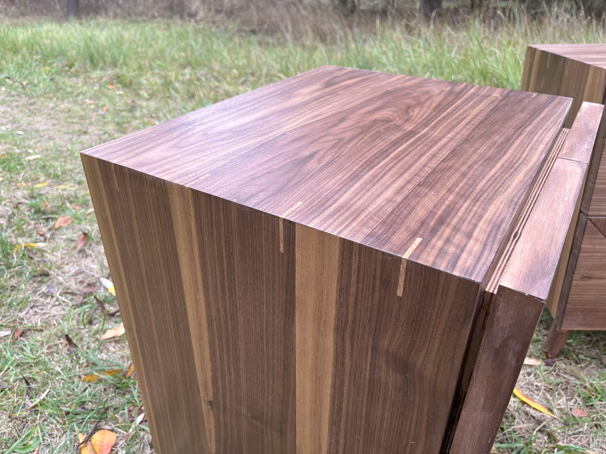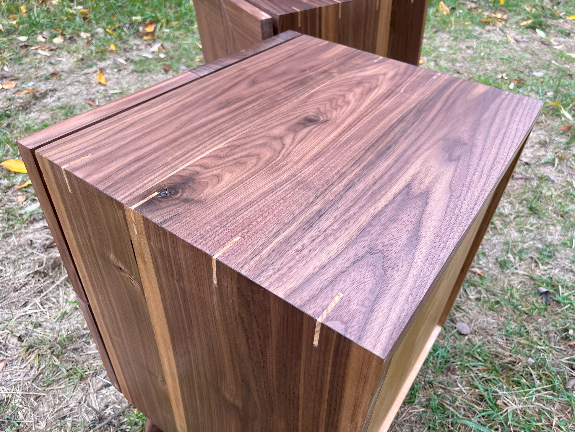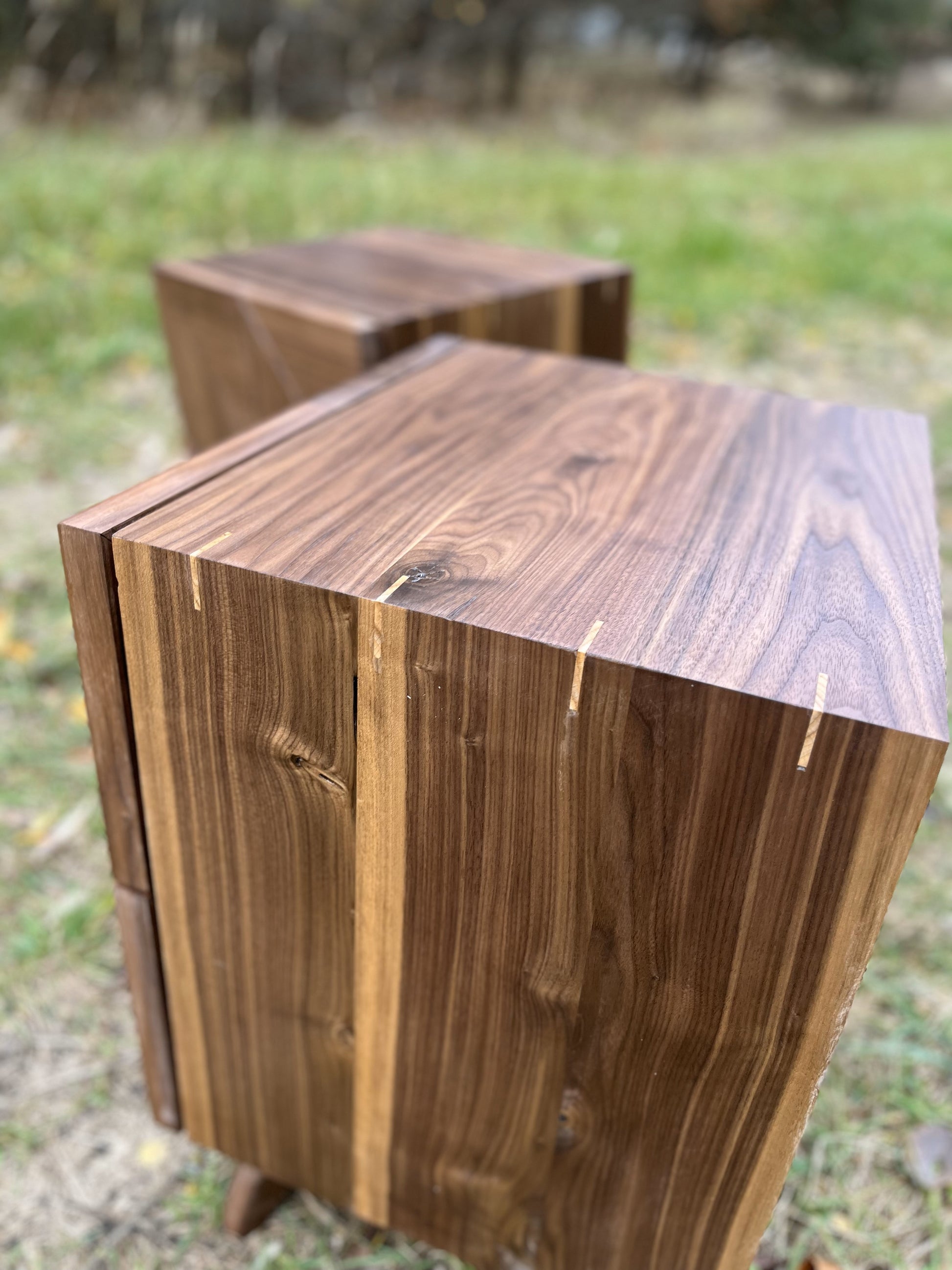 Tyto noční stolky byly vyrobeny z exotické dřeviny - z amerického ořechu. Strom má elegantní tmavou barvu a v současné době je první volbou výrobců luxusního nábytku.