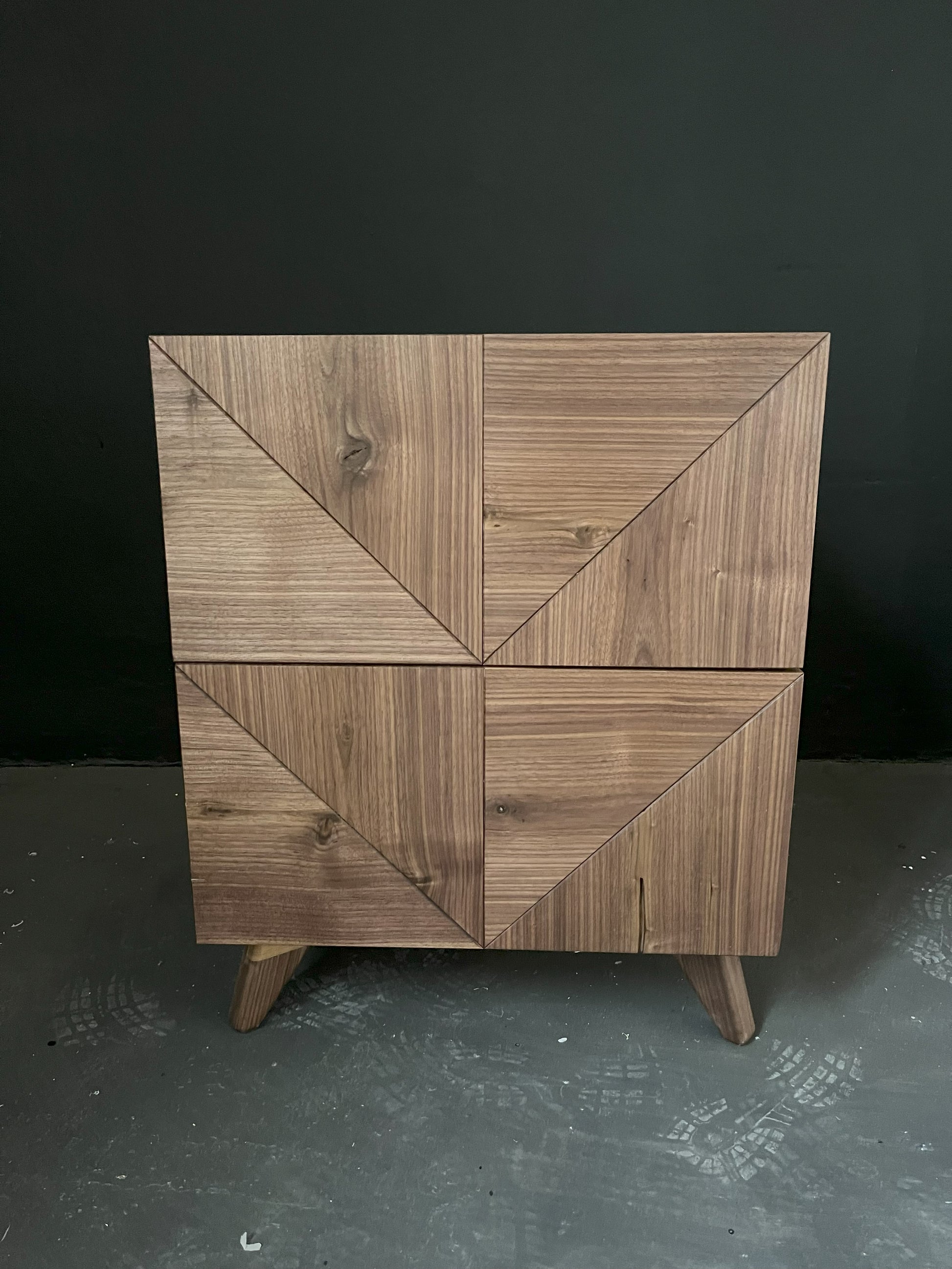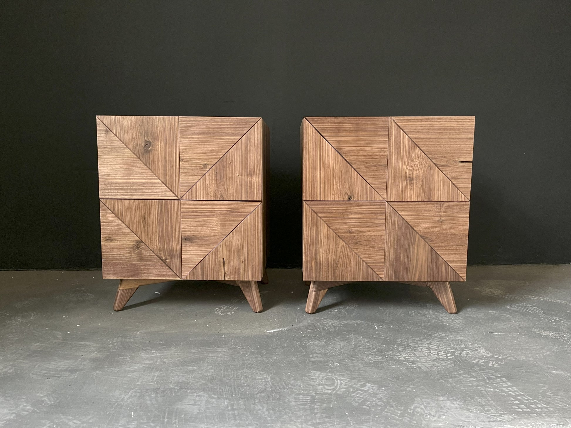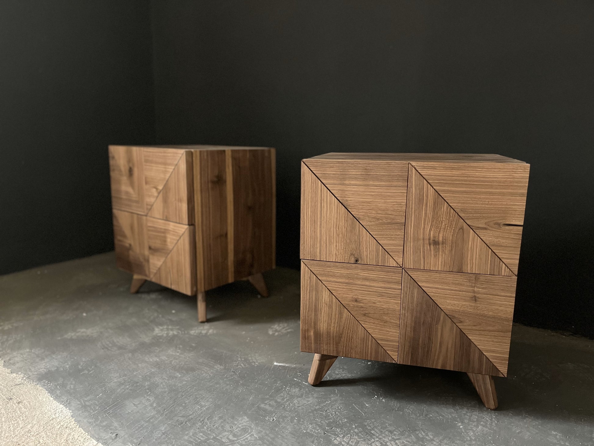Zvolil jsem nevšední design trojúhelníku, který má oddělit tyhle noční stolky od běžného nábytku, který lze koupit v obchodech.